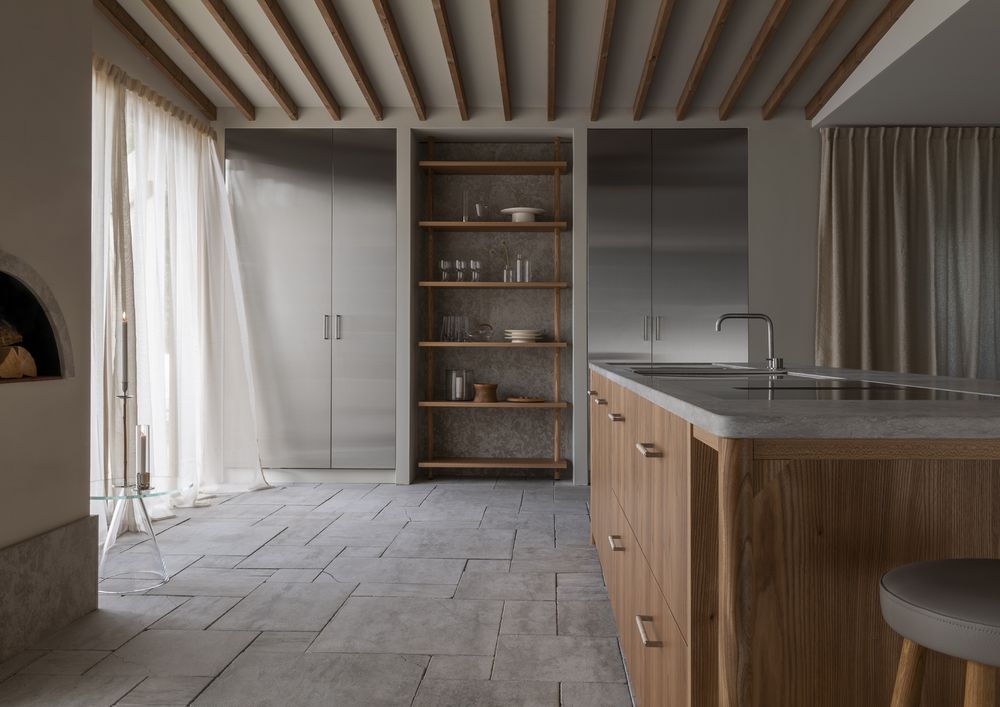 Inspirationen er det rustikke og eksklusive med udgangspunkt i naturlige materialer – en sand fortælling om træ og sten. Det er et køkken, der decideret tigger om et rum med plads til store volumener og massive materialer. Med lige linjer og rette vinkler har designer Louise Liljencrantz skabt sit eget resolutte koncept i tidløs stil. Hun beskriver konceptet som Old Victorian Manor goes Japan.