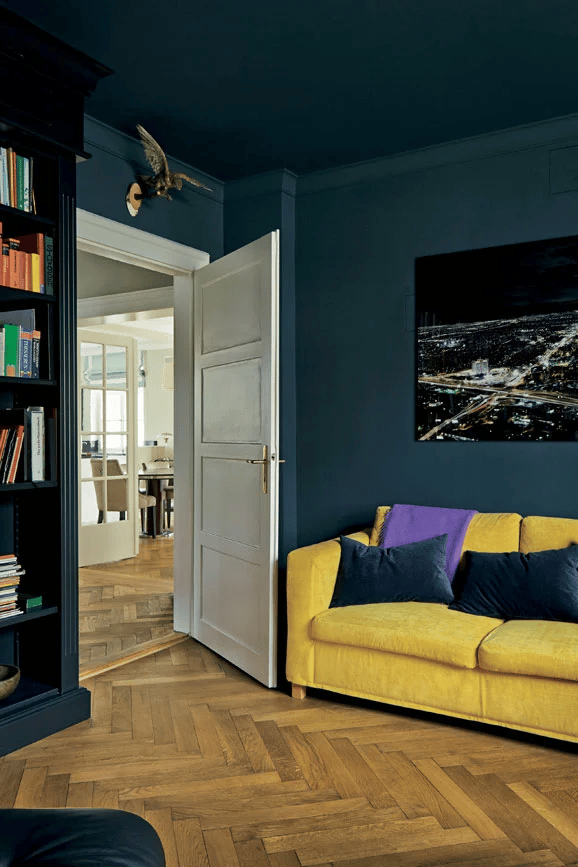 This strong blue takes its name from the fantastically coloured woodwork much used by the Dutch, and still works wonderfully to ground skirtings or as an accent colour on the walls when teamed with Borrowed Light. The green undertones of this timeless, deep and dramatic blue means it sits as happily outside as it does in small dark rooms.