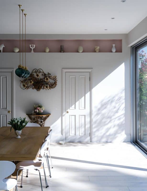 Malet i kuløren Pavilion Gray No.242, Modern Emulsion & Estate Eggshell; Calamine No.230, Estate Emulsion / Malet i kuløren Studio Green No.93 & Pointing No.2003, Estate Emulsion; Pointing No.2003, Estate Eggshell